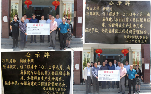 隨后,舉行了簡短的捐贈儀式。省造價管理協(xié)會捐贈兩萬元為陵波村修建柳壩閘和韓墩寺閘;安徽華普工程造價咨詢有限公司捐贈三萬元資助當(dāng)?shù)刎毨?。省造價管理總站副站長李萍,省造價管理協(xié)會副理事長洪蔚華、秘書長王磊,六安市造價管理站站長蘇道勝等有關(guān)人員參加了此次活動。